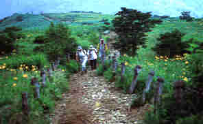 また三国権現から三国山への中腹には通称「お花畑」があり、時期ともなれば一面のニッコウキスゲなどの群生が登山者の目を楽しませてくれます。